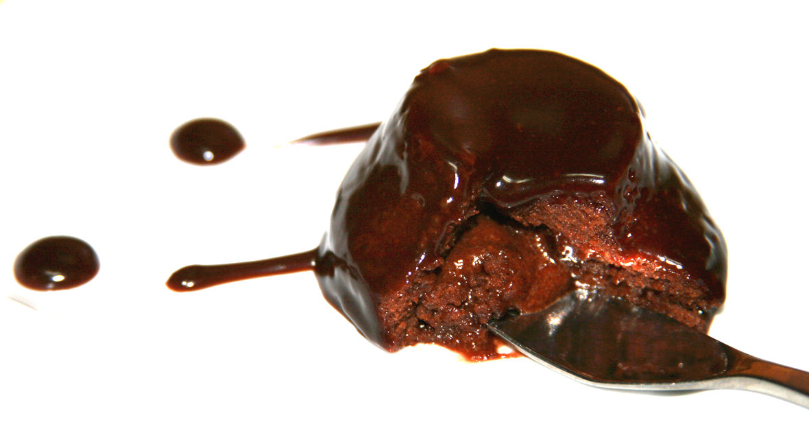 (If the cake resists and bounces back when you touch it, your dessert is now warm cake with no runny center. In which case, pour the warm sauce over the warm cake, serve it and it really will be delicious. Of course, you didn’t tell anyone in advance you were serving warm chocolate cake with runny center, now did you? If you did, privately in your kitchen, make a very small hole in the cake, pour warm nutella sauce inside then pour warm nutella sauce over. Our secret.)