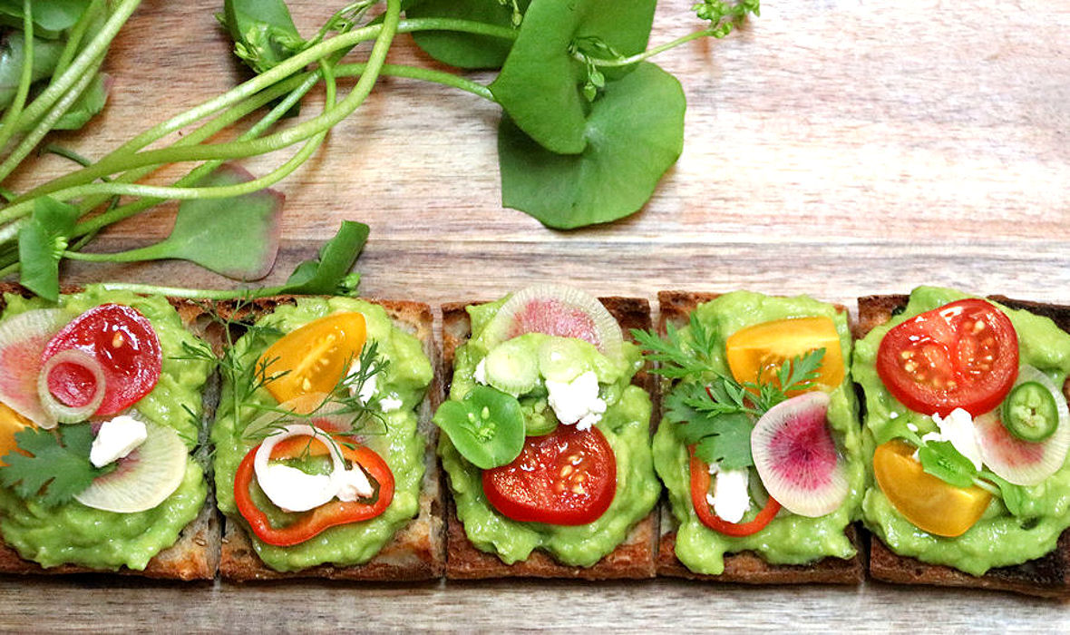 Guacamole Toast: Dollop with guacamole. Garnish with the toppings, cheese, and herbs of your choice. Enjoy!