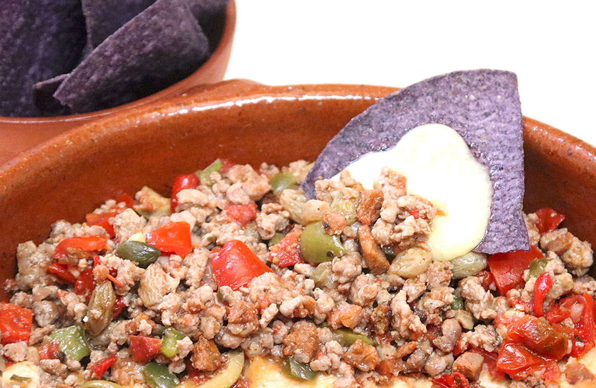 Everyone loves a festa. Every cook loves making an easy dish that is a guaranteed hit, like a Superbowl touchdown or knocking it out of the park. Beloved by many people are casseroles, especially for entertaining. Think Picadillo. This is not any ordinary casserole. It is a treasured dish transversing Spain to Cuba to Latin America to Mexico. What makes this version special? The secret is in layering. Melted cheese is on the bottom with a savory meat or poultry filling on top. Think spice, sweet, salt, and smoke, with chili pepper heat, scooped onto crisp tortilla chips, wrapped in soft flour tortillas, or stuffed into crunchy taco shells.