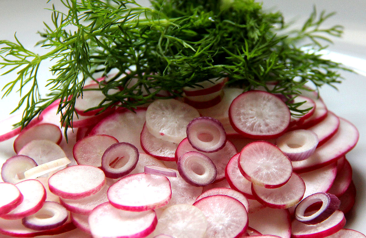Serve chilled. Radish Salad perks up the outdoor buffet. As part of the full menu, it becomes a memorable appetizer presented with pumpernickel bread, smoked fish, or grilled fish or shellfish, unifying into such a pleasing well-designed plate. Be sure to include thin slices of tart green apple in the salad, and your guests will be talking about your fabulous dish. It is surprising how something so simple, inexpensive, and easy-to-make, can be so good! Vodka-based cocktails, cucumber martinis, or fresh lemonade provide that perfect nip for a refreshing meal.