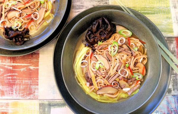 Shredded tofu noodles do not require cooking. Place them directly in serving bowls with seasonal vegetables and mushrooms. Ladle hot broth over all. Adding your favorite protein of cooked poultry, meat, or seafood really complements the noodles and mushrooms for a satisfying and nutritious meal.